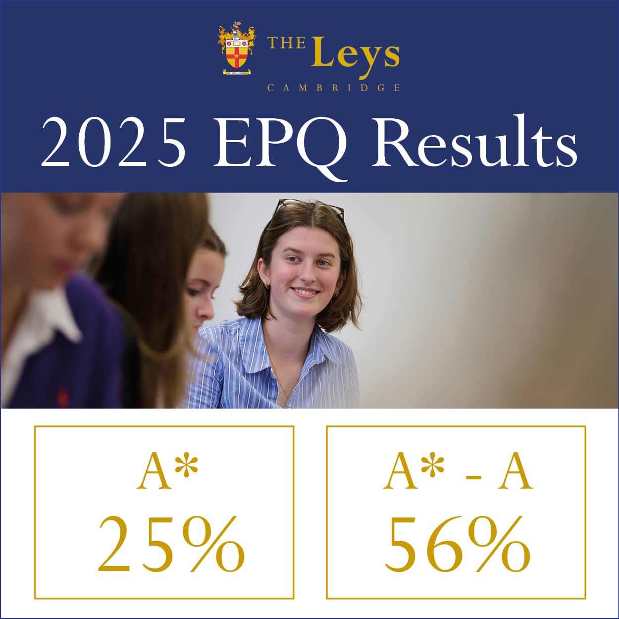 Charlotte Drinkwater, EPQ Coordinator at The Leys, commented: “We are incredibly proud of the hard work, curiosity and independence shown by our pupils. Their achievements reflect both their commitment and the strength of the EPQ programme.”